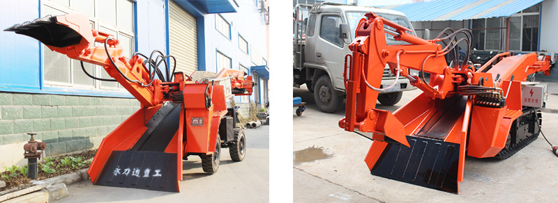 2019-11-6 16:44:18 瀏覽: 小型扒渣機采用挖機底盤原理設計制造,采用實心輪胎,雙行走馬達,雙油泵輸出,轉彎半徑更小,可實現360度原地旋轉,扒渣機為四輪驅動,推動力大、扒取范圍廣、全斷面裝巖、不需要人工輔助清理工作面;采用模塊式生產,方便下井安裝作業,車身小、結構緊湊、重心低、機動靈活、工作穩定是狹窄面不可替代的機型。