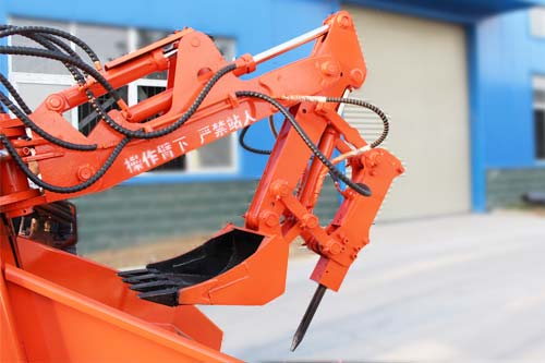 120型破碎錘扒渣機主要是為大型巷道而設計,整機主要優勢為:挖掘系統大小臂配有標準型和加長型,標準型大小臂長度為1.05m和1.0m,加長型大小臂長度為1.2m和1.25m,供用戶根據巷道截面大小定制選裝。建議2.6×2.6截面巷道選用標準型大小臂,3.0×3.0及以上截面巷道選用加長型大小臂,以提高工作效率。